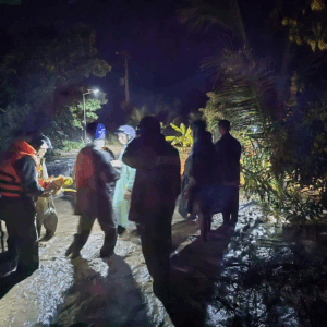 Lực lượng chức năng bơi ghe đưa các nạn nhân đi cấp cứu – Ảnh: Người dân cung cấp