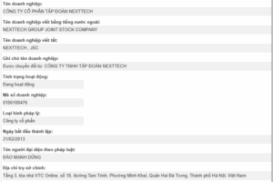 Thông tin về NextTech trên Cổng thông tin Quốc gia về đăng ký doanh nghiệp cho thấy ông Đào Mạnh Dũng đang là người đại diện theo pháp luật của doanh nghiệp. Ảnh chụp màn hình
